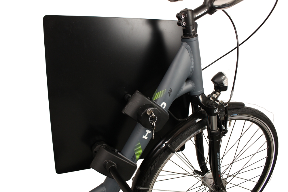 Características: - Rápida e fácil instalacão - Fechadura incluida - Sem necessidade de cintas - A placa não tem contacto com o quadro da bicicleta - Fabricado em plástico rigido
